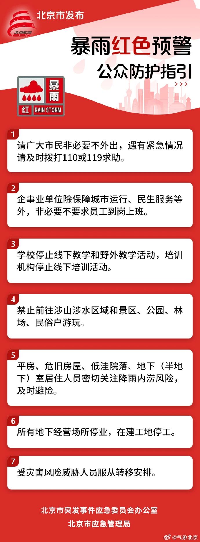 非必要不外出,非必要不要求员工到岗上班!北京多地暴雨红警