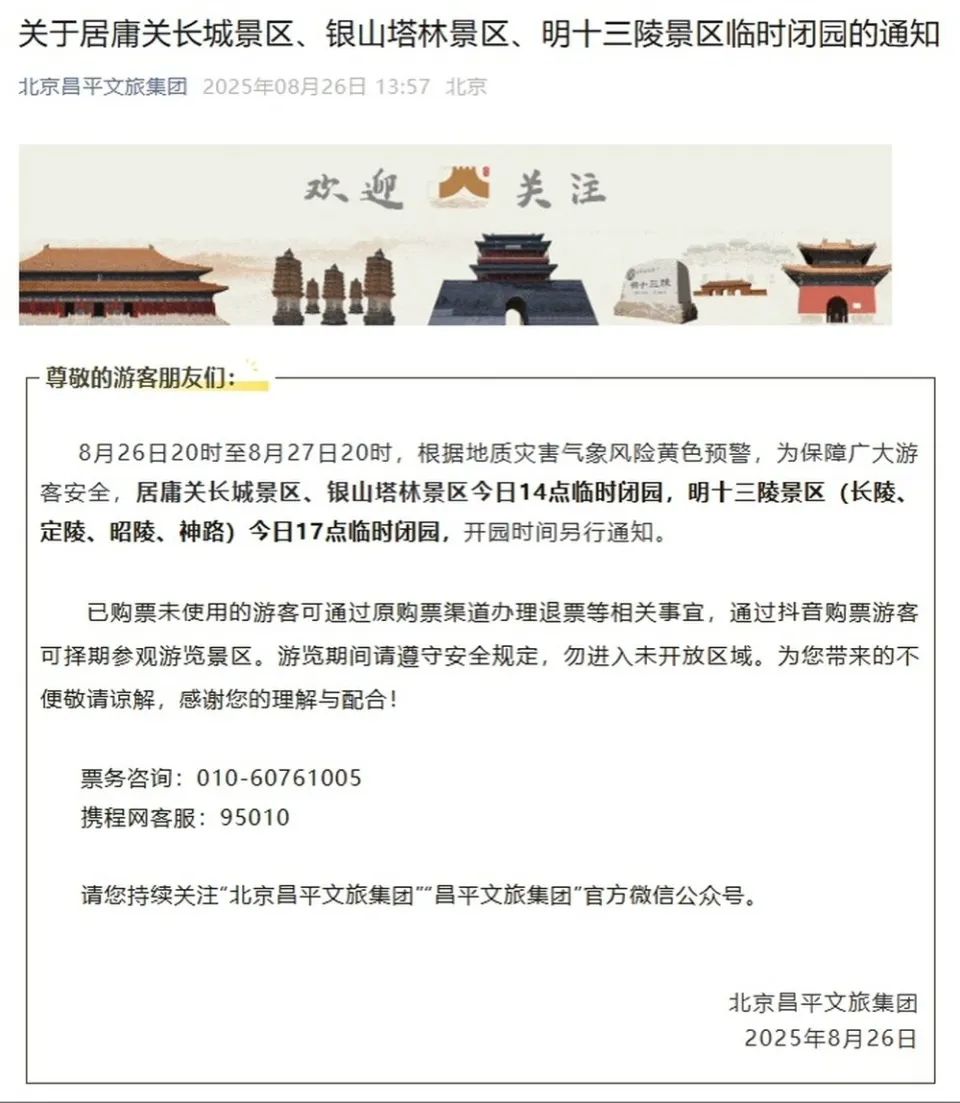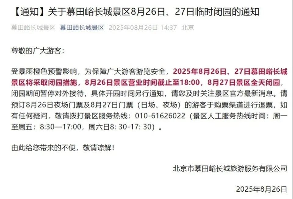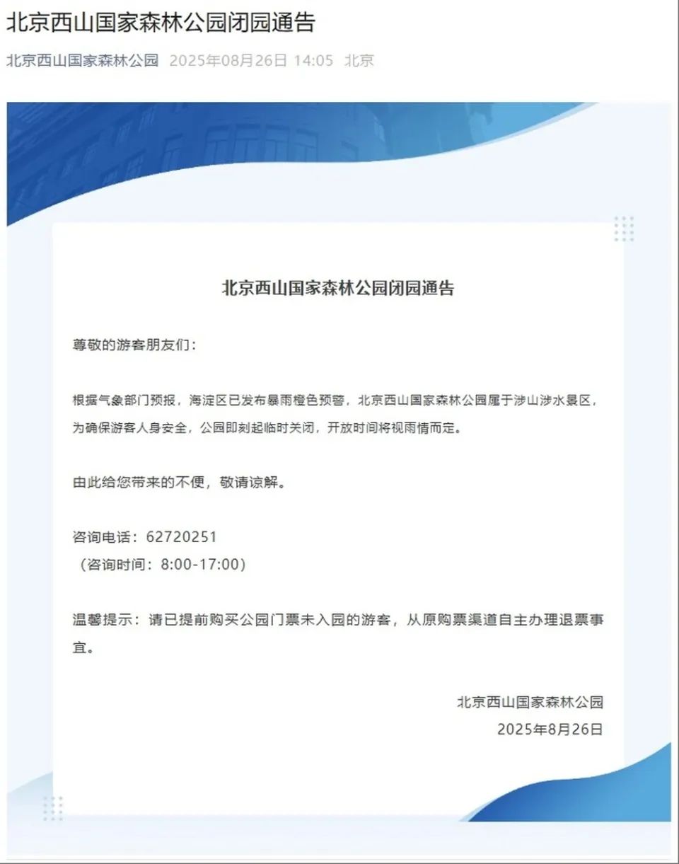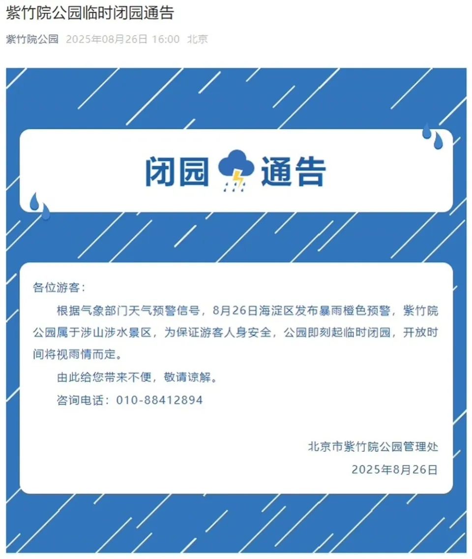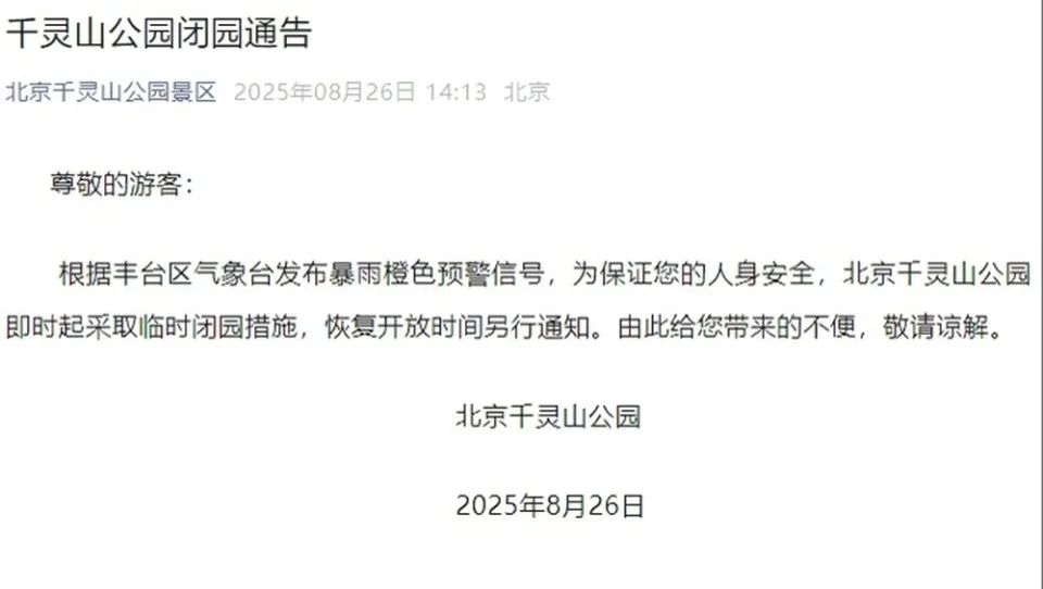 今日市郊铁道S2线、怀柔-稀云线、通稀线全部列车全盘下运。此轮落雨将劝化昭质接通出止,一面陡立道段、停凸式坐接桥大概爆发积火,对于来日旦夕顶峰接通出止有没有利教化。 多家花园景区姑且闭关 凭据气呼呼象部分天色预警旌旗灯号,8月26日,北京喷鼻猴子园、邦家动物园、玉渊潭花园、慕田峪少乡等多家花园景区姑且闭关。